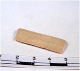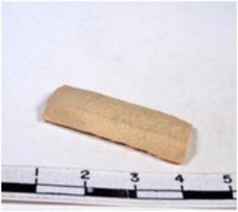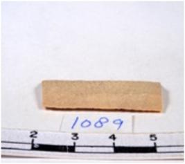 | Description / विवरण | A fragment of a rectangular shaped chert blade showing dorsal sides with sharp cutting edges having smooth surface and uneven section. |