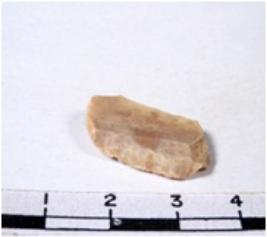 | Description / विवरण | A fragment of a rectangular shaped chert blade showing dorsal sides with sharp cutting edges having smooth surface and triangular section. |