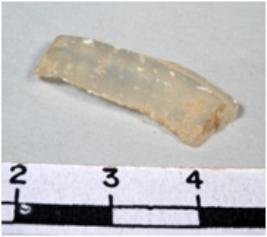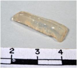 | Description / विवरण | A fragment of a rectangular shaped chalcedony blade showing flat sides with sharp cutting edges having smooth surface and uneven section. |