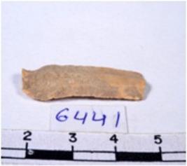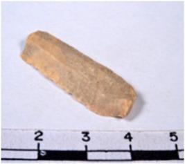 | Description / विवरण | A fragment of a rectangular shaped chert blade showing parallel sides with sharp edges having smooth surface and uneven section. |