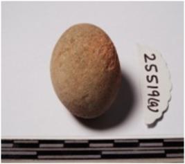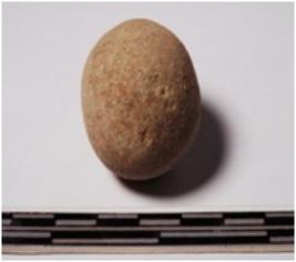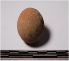 | Description / विवरण | A terracotta sling ball, round in shape of smooth surface. |