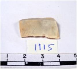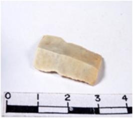 | Description / विवरण | A fragment of a rectangular shaped chert blade showing dorsal sides with sharp cutting edges having smooth surface and uneven section. |