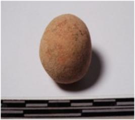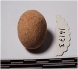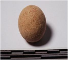 | Description / विवरण | A terracotta sling ball round in shape of smooth surface. |