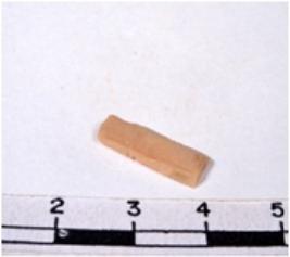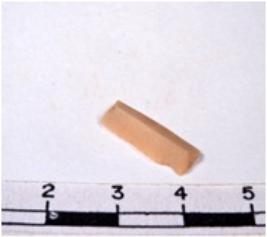 | Description / विवरण | A fragment of a rectangular shaped chert blade showing dorsal sides with sharp cutting edges having smooth surface and triangular section. |