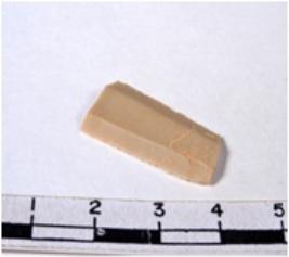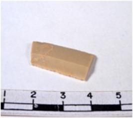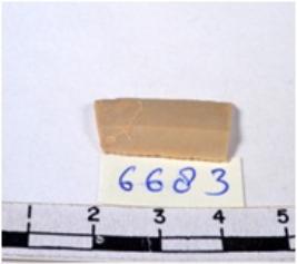 | Description / विवरण | A fragment of a rectangular shaped chert blade showing dorsal sides with sharp cutting edges having smooth surface and triangular section. |