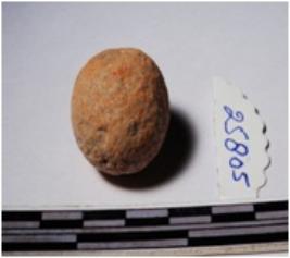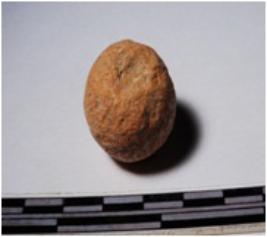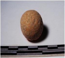 | Description / विवरण | A terracotta sling ball round in shape of smooth surface. |