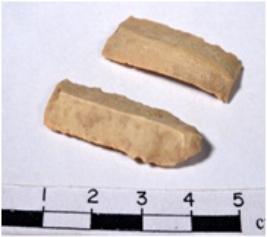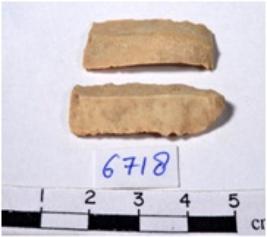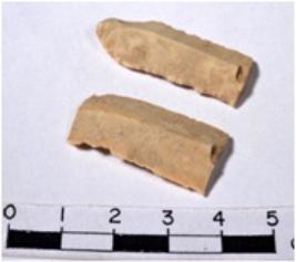 | Description / विवरण | A fragment of a rectangular shaped chert blade showing dorsal sides with sharp cutting edges having rough surface and triangular section. |