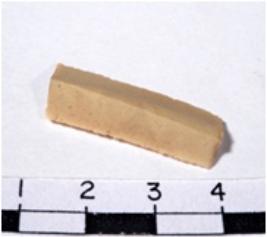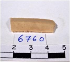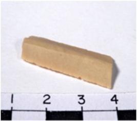 | Description / विवरण | A fragment of a rectangular shaped chert blade showing dorsal sides with sharp cutting edges having smooth surface and triangular section. |