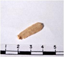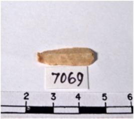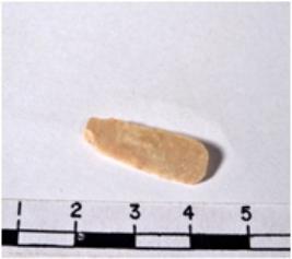 | Description / विवरण | A fragment of a rectangular shaped chert blade showing dorsal sides with sharp cutting edges having smooth surface and uneven section. |