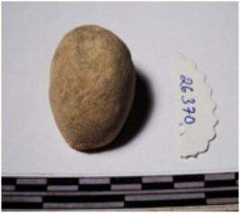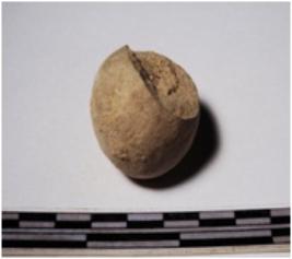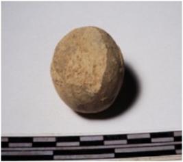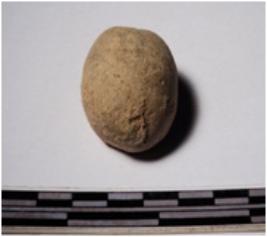 | Description / विवरण | A fragment of a terracotta sling ball circular in shape of smooth surface. |