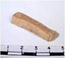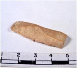| Description / विवरण | A fragment of a rectangular shaped chert blade showing dorsal sides with sharp cutting edges having smooth surface and triangular section. |