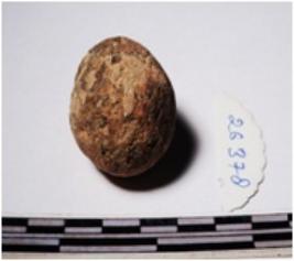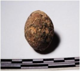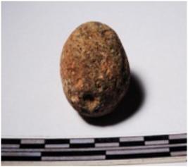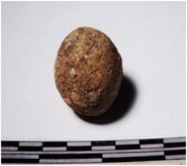 | Description / विवरण | A terracotta sling ball round in shape of smooth surface. |