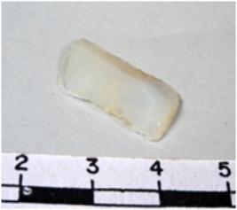 | Description / विवरण | A fragment of a rectangular shaped chalcedony blade showing dorsal sides with sharp cutting edges having smooth surface and oval like section. |