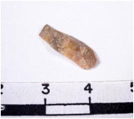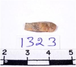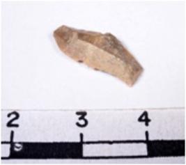 | Description / विवरण | A fragment of a rectangular shaped chert blade showing dorsal sides with sharp cutting edges having smooth surface and triangular section. |