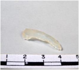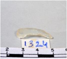| Description / विवरण | A fragment of a triangular shaped chalcedony blade showing flat side sharp cutting edges having smooth surface and triangular section. |