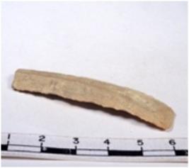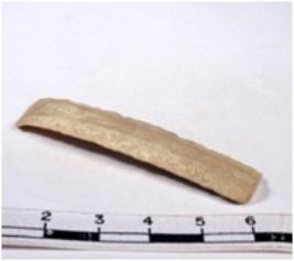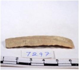 | Description / विवरण | A fragment of a rectangular shaped chert blade showing dorsal sides with sharp cutting edges having smooth surface and triangular section. |