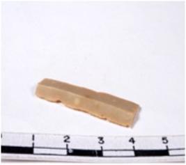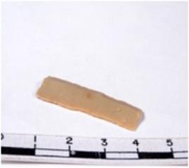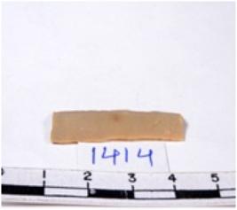| Description / विवरण | A fragment of a rectangular shaped chert blade showing dorsal sides with sharp cutting edges having smooth surface and triangular section. |