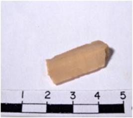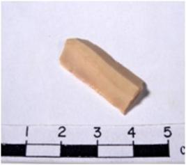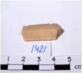| Description / विवरण | A fragment of a rectangular shaped chert blade showing dorsal sides with sharp cutting edges having smooth surface and triangular section. |