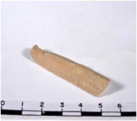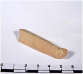 | Description / विवरण | A fragment of a triangular shaped chert blade showing dorsal sides with sharp cutting edges and triangular section. |