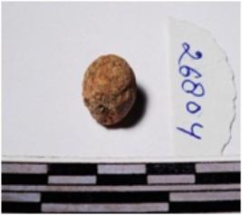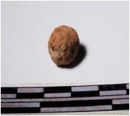 | Description / विवरण | A terracotta sling ball round in shape of smooth surface. |