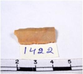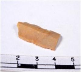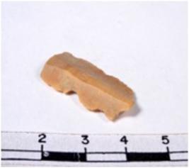 | Description / विवरण | A fragment of a rectangular shaped chert blade showing dorsal sides with sharp cutting edges having smooth surface and triangular section. |
