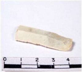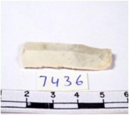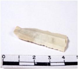 | Description / विवरण | A fragment of a rectangular shaped chert blade showing dorsal sides with sharp edges having smooth surface and triangular section. |
