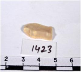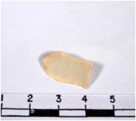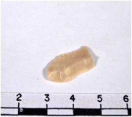 | Description / विवरण | A fragment of a rectangular shaped chert blade showing dorsal sides with sharp cutting edges having smooth surface and uneven section. |