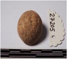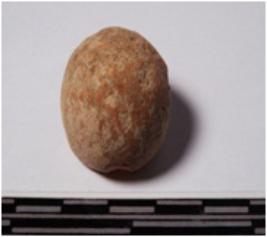 | Description / विवरण | A fragment of a terracotta sling ball, circular in section of rough surface. |