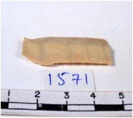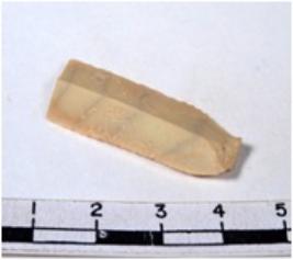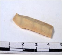 | Description / विवरण | A fragment of a rectangular shaped chert blade showing dorsal sides with sharp cutting edges having smooth surface and triangular section. |
