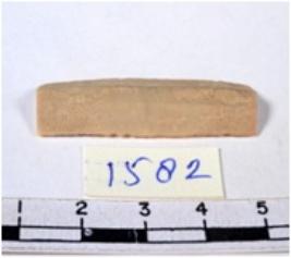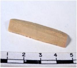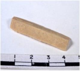| Description / विवरण | A fragment of a rectangular shaped chert blade showing dorsal sides with sharp cutting edges having smooth surface and triangular section. |
