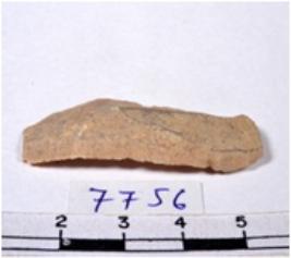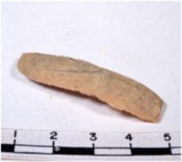| Description / विवरण | A fragment of a rectangular shaped chert blade showing dorsal sides with sharp cutting edges having smooth surface and triangular section. |