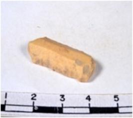 | Description / विवरण | Paralleled sided brownish grey blade having truncated end and knife edged side at another end sharp cutting edges end trapezoidal section, and truncated both ends. |