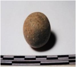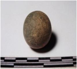 | Description / विवरण | A terracotta sling ball round in shape of smooth surface. |