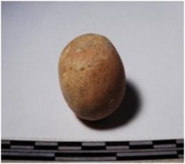| Description / विवरण | A terracotta round in shaped sling ball of smooth surface. |