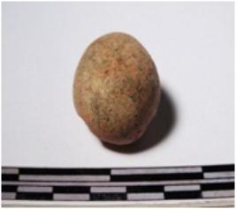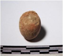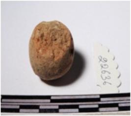 | Description / विवरण | A terracotta sling ball round in shape of smooth surface. |