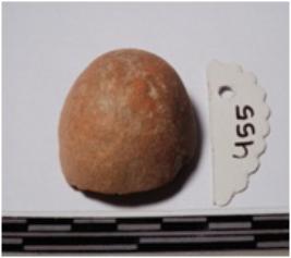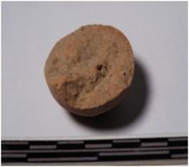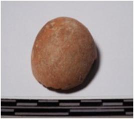 | Description / विवरण | A fragment of a terracotta round shaped sling ball of smooth surface. |