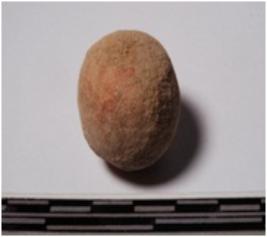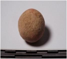 | Description / विवरण | A terracotta sling ball round in shape of smooth surface. |
