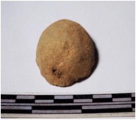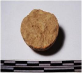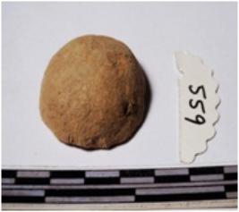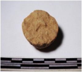 | Description / विवरण | A fragment of a terracotta round shaped sling ball, circular in section of smooth surface. |