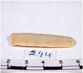 | Description / विवरण | Brownish some what parallel edged tool having multiple rib with marks of secondary flaking. One end is truncated where as another is convex and blunted retouched edge. Trapezoidal section. |