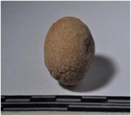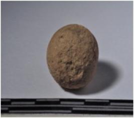 | Description / विवरण | A terracotta sling ball, round shaped and smooth surface. |