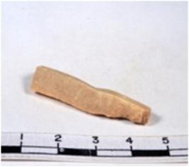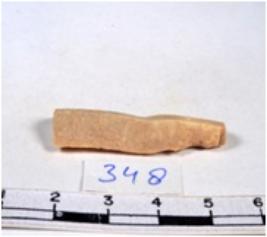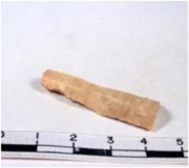 | Description / विवरण | Chert blade, brownish, thick, broad, parallel sided, double-ribbed blade, both ends truncated, with sharp retouched margins, triangular section. |