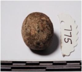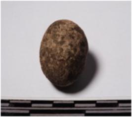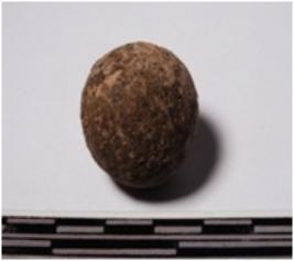 | Description / विवरण | A terracotta sling ball round in shape of smooth surface. |