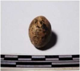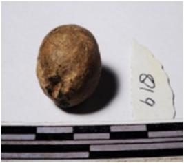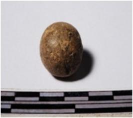 | Description / विवरण | A terracotta sling ball round in shape of smooth surface. |