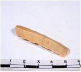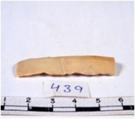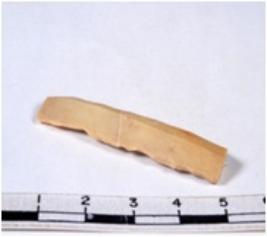 | Description / विवरण | A fragment of a rectangular shaped chert blade showing dorsal sides with sharp cutting edges having smooth surface and triangular section. |