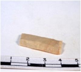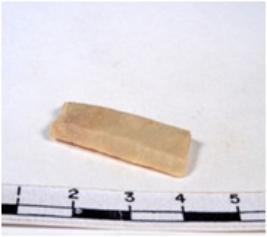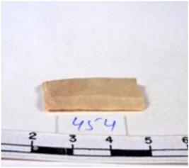 | Description / विवरण | A fragment of a rectangular shaped chert blade showing dorsal sides with sharp cutting edges having smooth surface and triangular section. |