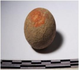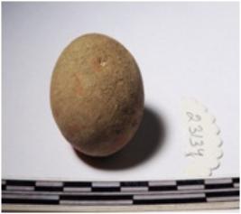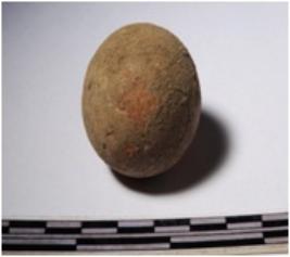 | Description / विवरण | A terracotta sling ball round in shape of smooth surface. |