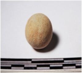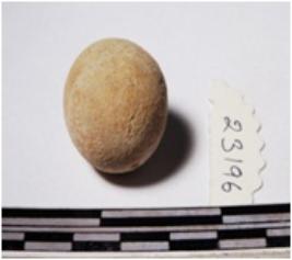 | Description / विवरण | A terracotta sling ball round in shape of smooth surface. |