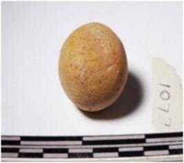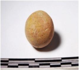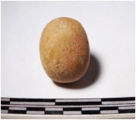 | Description / विवरण | A terracotta sling ball round in shape of smooth surface. |