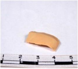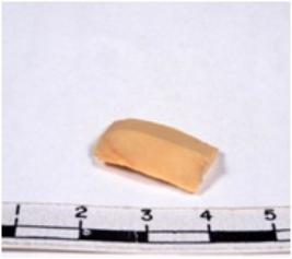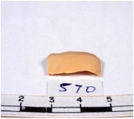 | Description / विवरण | A fragment of a rectangular shaped chert blade showing dorsal sides with sharp edges having smooth surface and triangular section. |