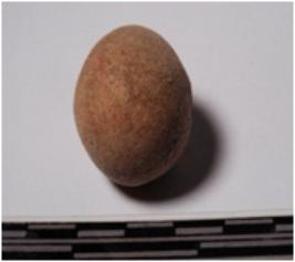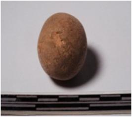 | Description / विवरण | A terracotta sling ball round in shape of smooth surface. |